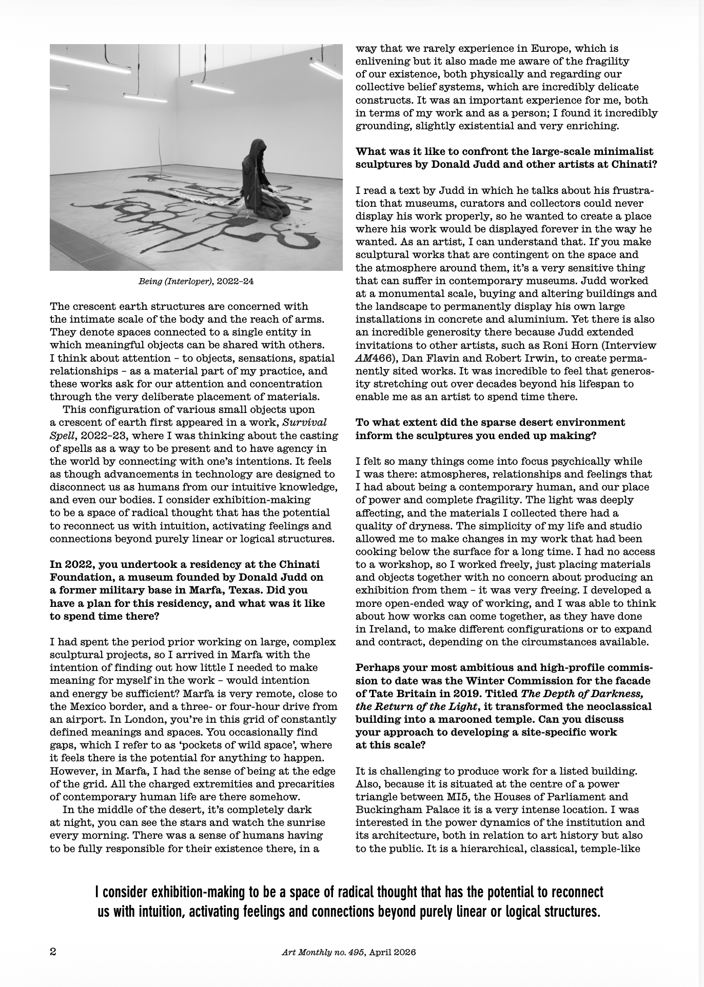 Chinati Foundation Newsletter, text by Ingrid Schaffner