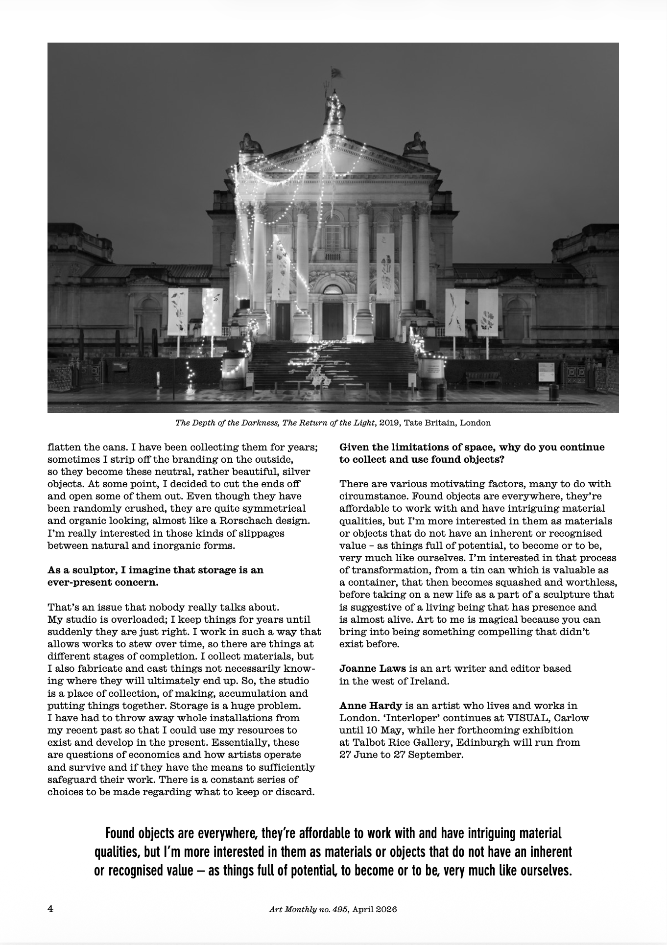 Art Monthly, Only Connect, Anne Hardy, interviewed by Joanne Laws